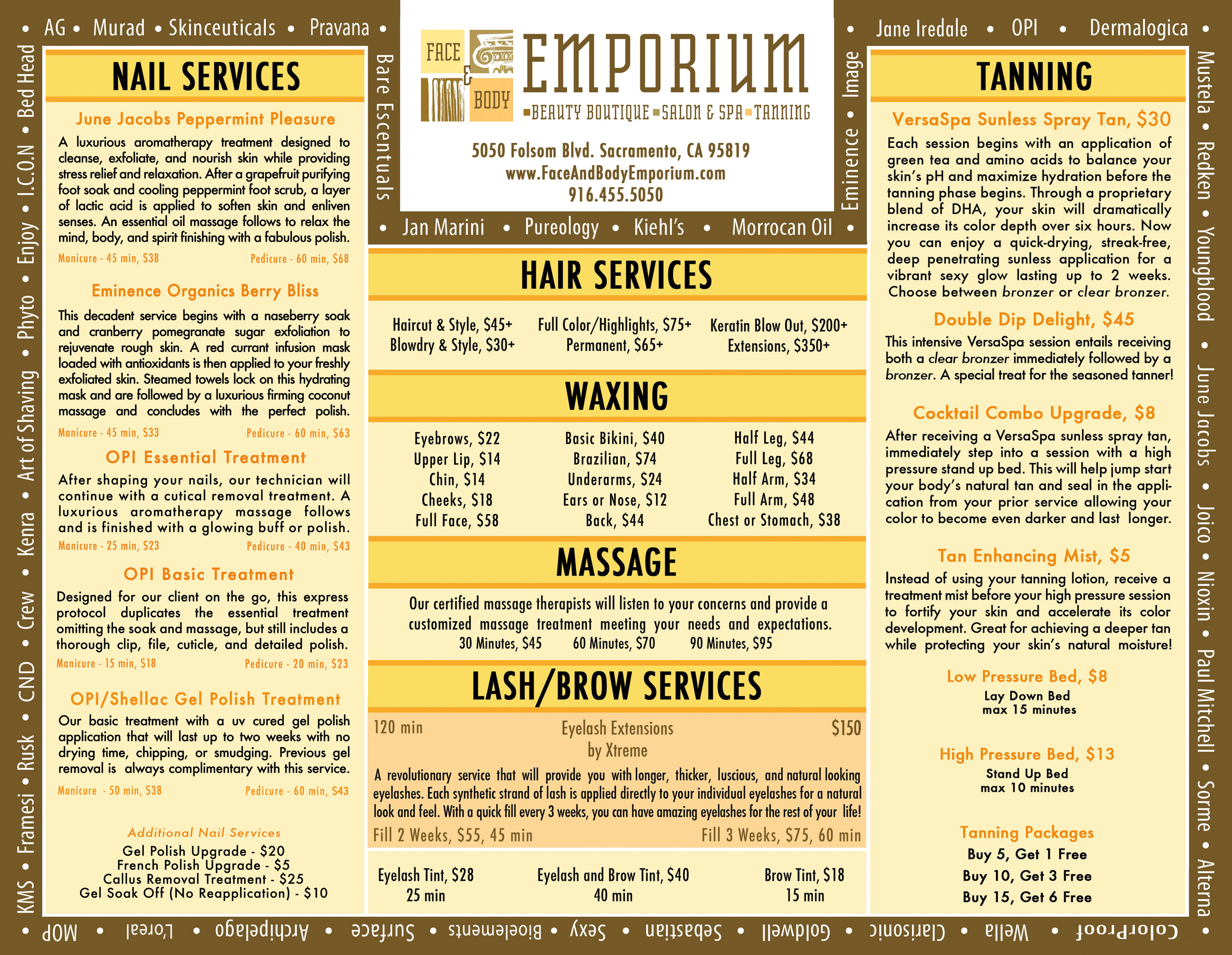 Please download a menu of the services we offer. (Front - Back)